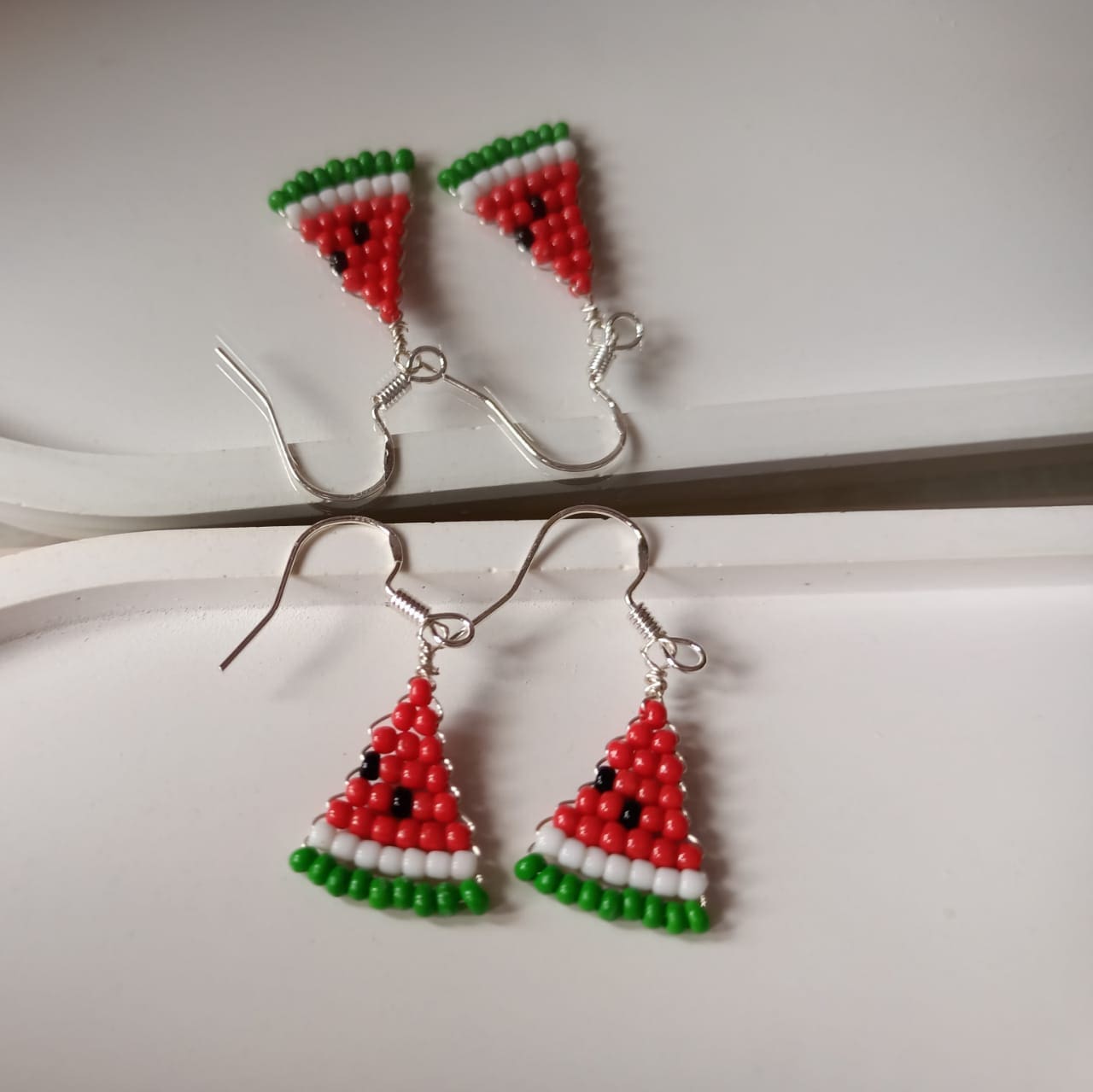 ntroducing our adorable watermelon design ear hook earrings. These earrings feature a playful and vibrant watermelon motif that adds a touch of fun to your outfit. They are perfect to wear with a range of styles, from a casual t-shirt and denim look to a trendy one-piece dress. The style of these earrings is comfortably casual, making them a versatile accessory for everyday wear. Add a pop of color and charm to your ensemble with these fashionable watermelon ear hook earrings.